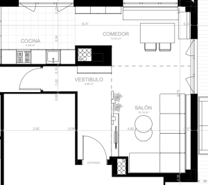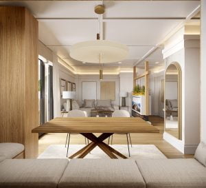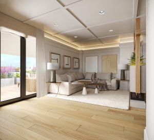 1. En esta vivienda el salón tenía una dimensión menor que el comedor. Se decidió unir las 2 estancias y decorarlas con tonos neutros para dar sensación de amplitud.