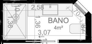 Ducha: Ducha discreta con una hornacina para facilitar el almacenaje para productos útiles diarios. El plato de ducha, grande, material antideslizante y al ras del suelo para que no haya escalones.