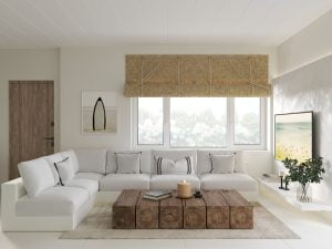 Persianas o Cortinas Translúcidas: Las cortinas son translúcidas que permitan la entrada de luz natural mientras protegen del resplandor del sol durante las horas más intensas y las persianas mallorquinas tipo decorativas.